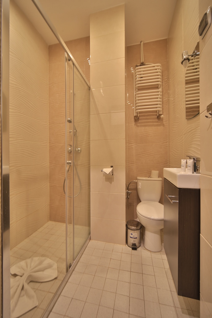 Przytulne pokoje o małych metrażach, powierzchnia łączna z łazienką to około 16 m². Pomieszczenia wyposażono w łóżka kontynentalne o wymiarach 90x200 cm, telewizor, lodówkę i czajnik.