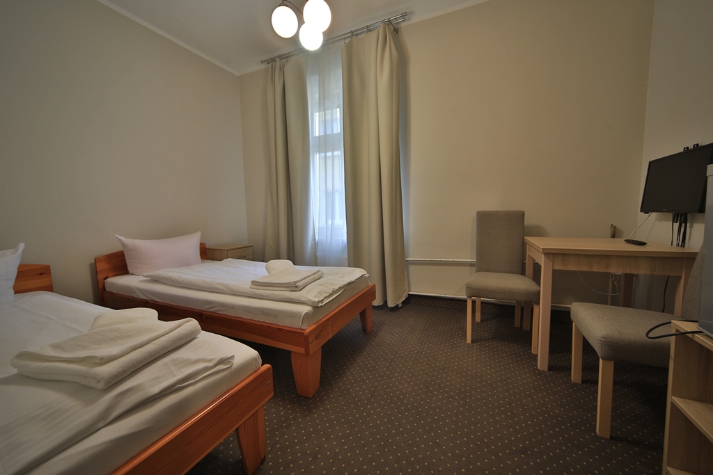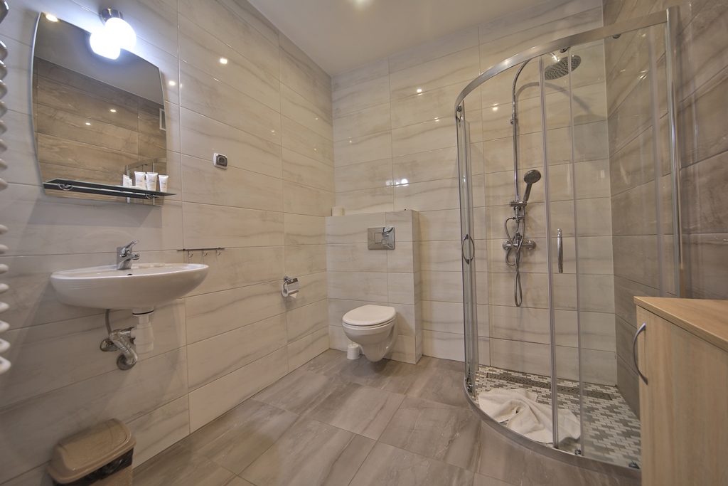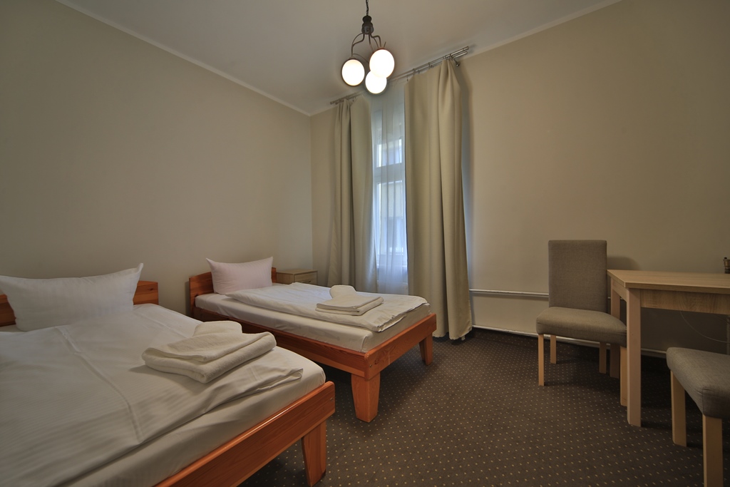 Pomieszczenie typu studio, składające się z dwóch pokoi i łazienki, przestronne, idealne dla rodzin, wyposażone w łóżka kontynentalne o wymiarach 180x200 cm z możliwością utworzenia osobnych łóżek o wymiarach 90x200 cm, telewizor, lodówkę i czajnik.